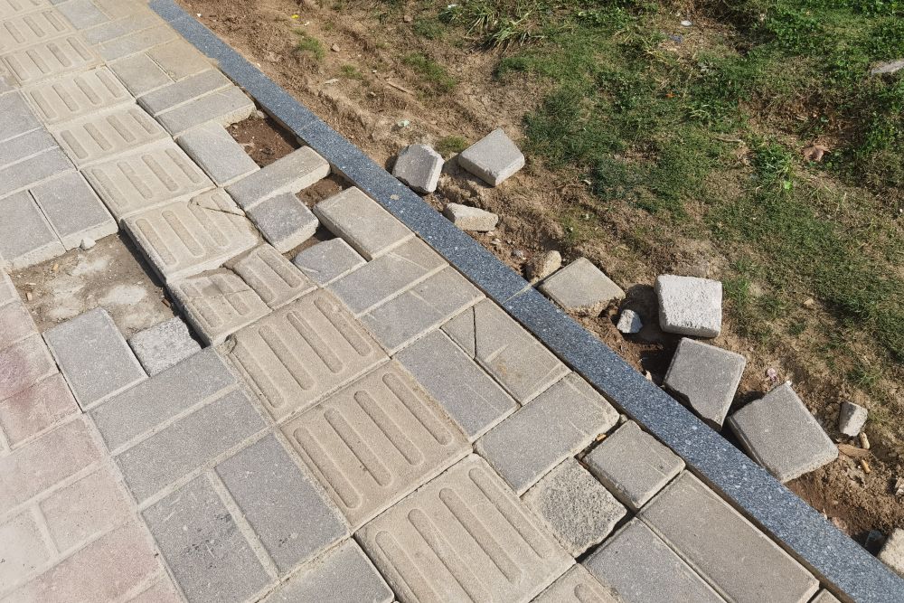 行人深一腳淺一腳!觀山湖市政正在修複這段人行道