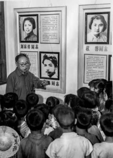 一九四九年後,貴陽市烈士展,劉家祥父親向觀眾講解劉家瑜/供圖