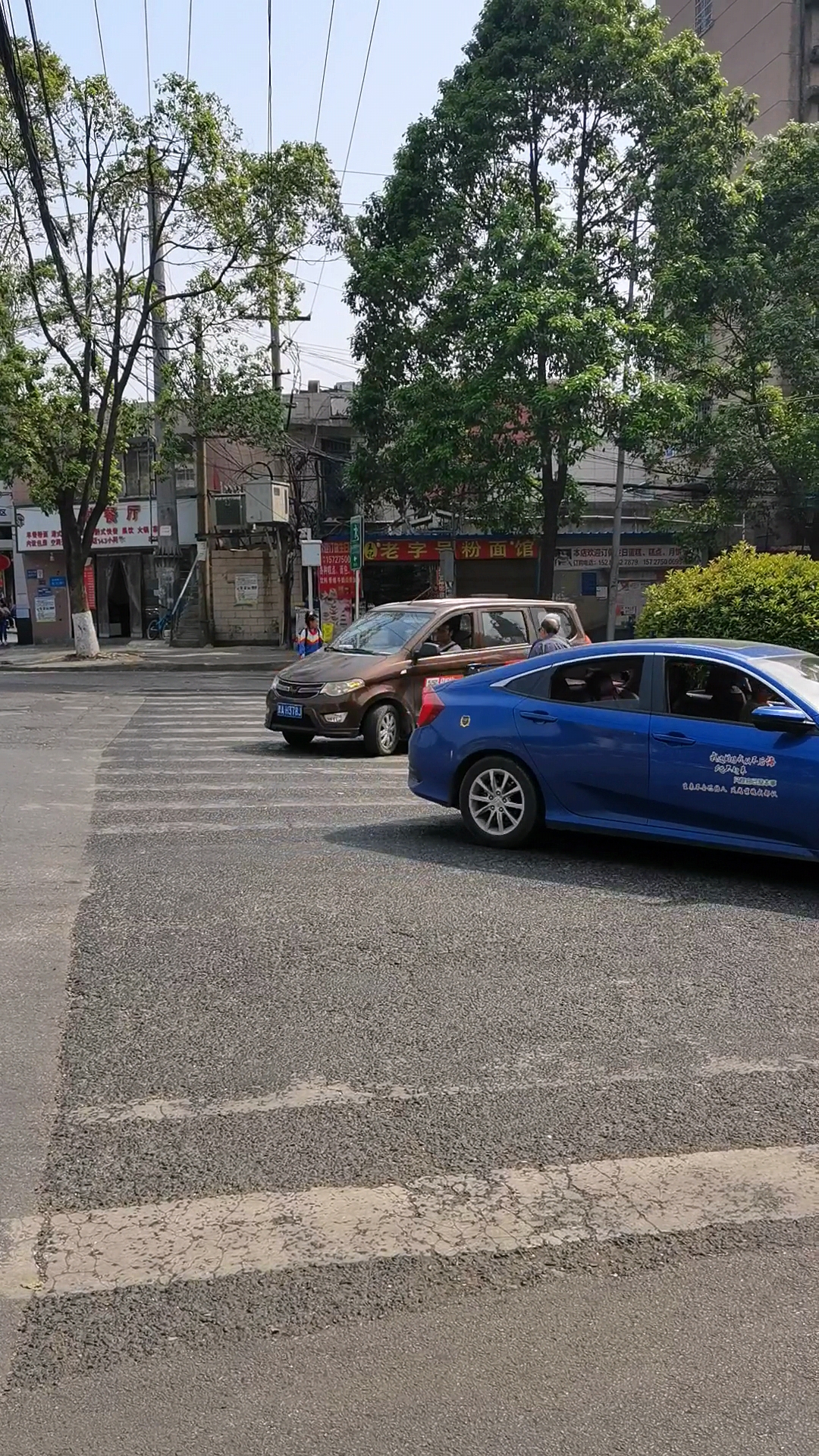 一名老人被掉頭車輛“圍住”。