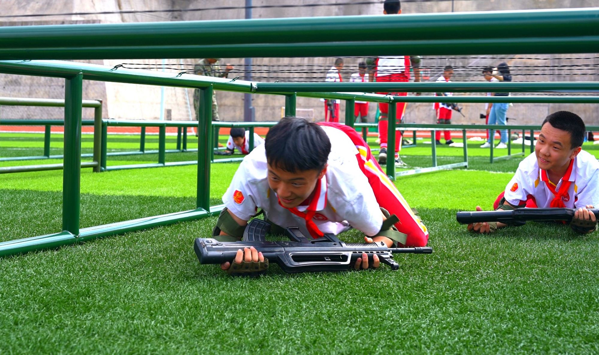 在裝備展示區,專業教官詳細講解了常用武器裝備的構造、性能及裝卸方法,並指導大家“零距離”參與體驗。在戰術訓練場上,官兵們以飽滿的熱情、昂揚的鬥誌進行了400米障礙、戰術動作、戰場救護、防護服穿戴等課目的精彩演示。他們身手矯健、勇往直前,頑強的戰鬥意誌、過硬的體能素質和軍事技能,贏得在場觀眾的熱烈掌聲。