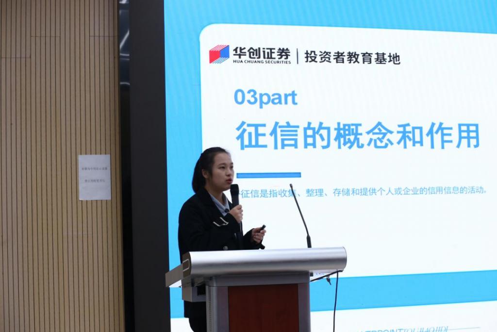 首先是由華創證券投教基地講師為同學們帶來的 " 校園貸與征信 " 知識宣講。