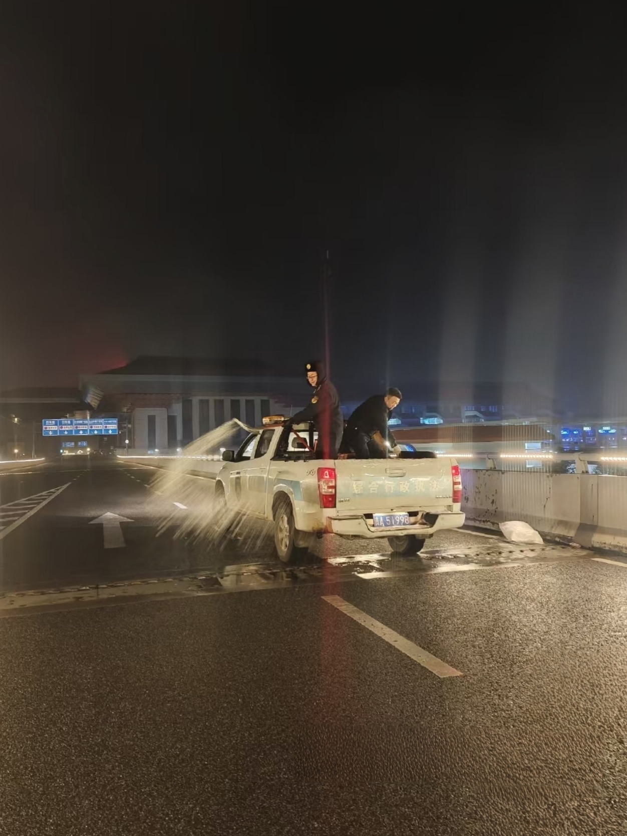 聞令出戰,執法力量晝夜清障保暢。 作為保障市政道路暢通的主力軍,貴安新區綜合行政執法支隊迅即啟動應急預案,圍繞“抗凝凍、保暢通”目標晝夜奮戰。此前,支隊已製定專項工作方案,構建起職責清晰的應急體係,並提前儲備足量工業鹽、防滑鏈等物資。1月20日夜間至21日清晨,氣溫跌破冰點,支隊立即出動執法人員192人次、車輛24台次,對轄區15條主要道路、25座橋梁進行全覆蓋巡查,並對出現凝凍的2條道路、7座橋梁開展緊急除冰作業,共計使用工業鹽10.3噸,有力保障了轄區主要市政道路的安全通行。支隊嚴格落實24小時值班帶班製度,依托應急指揮平台確保指令暢通,實現了“早發現、早預警、早處置”。