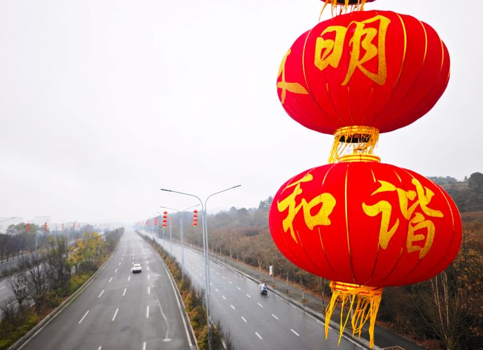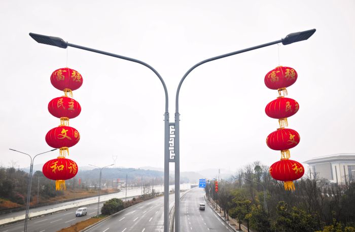 新春佳節將至,為營造2026年春節濃厚氛圍,讓新區人民在喜慶、祥和的氛圍中歡度佳節,貴安新區相關部門提前部署,在貴安市民中心廣場、百馬大道、貴安大道、大科城、大學城、貴安綜合保稅區等地做好節日環境布置,讓火紅的燈籠成為街頭最亮眼的新春風景。
