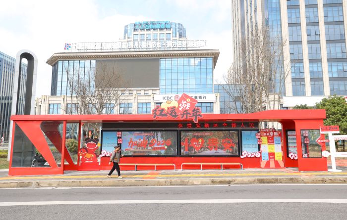 貴陽大數據科創城的公交站喜慶氛圍