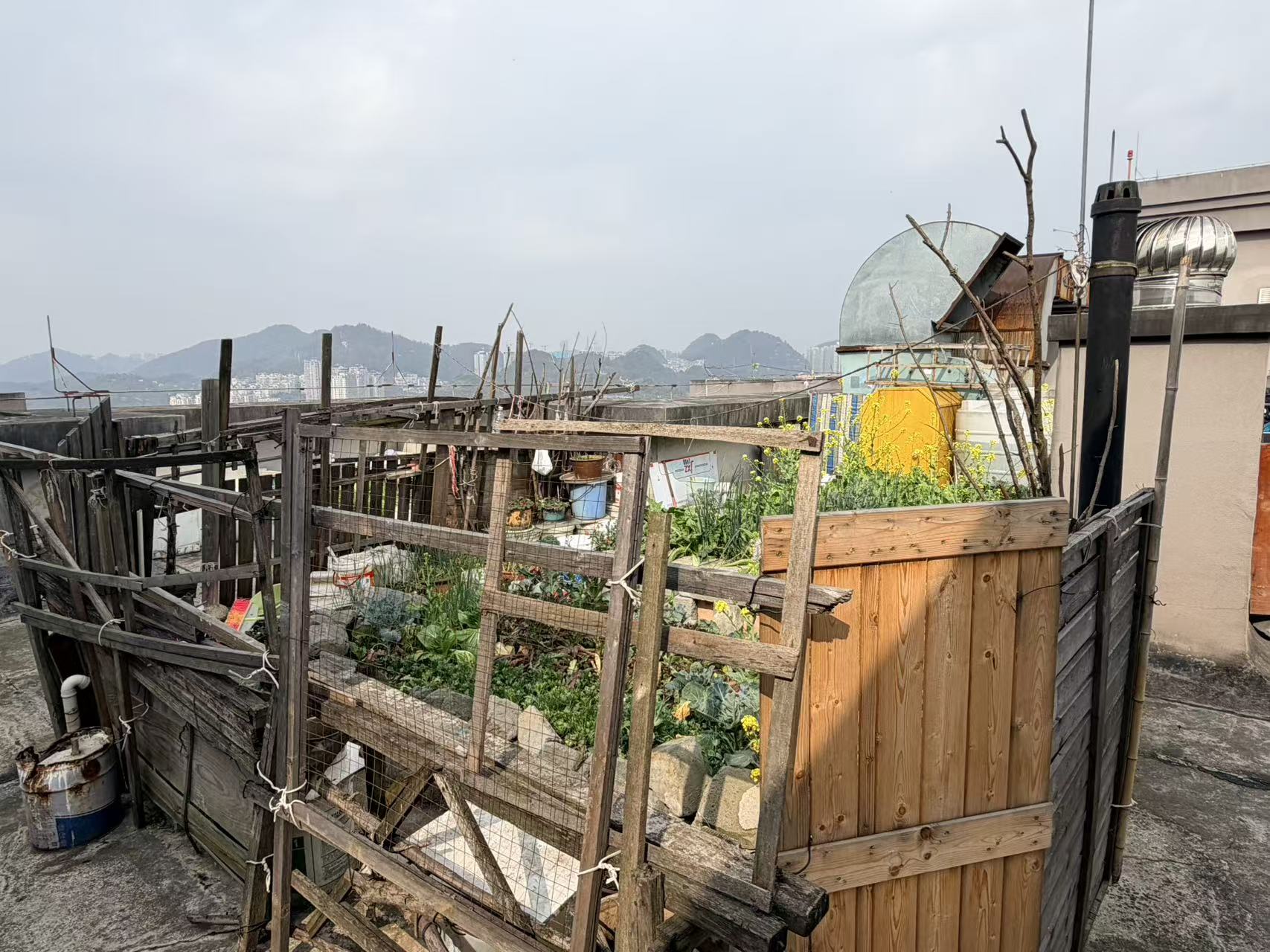 中大國際小區A3棟樓頂上圈地種菜的其中一角。