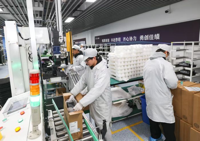 3月18日,記者在貴安新區龍山工業園貴州雲上鯤鵬科技有限公司(下稱“雲上鯤鵬”)生產基地看到,公司正全力推進一季度生產經營工作,奮力衝刺“開門紅”。車間內,機器轟鳴、運轉有序,兩條硬件製造產線滿負荷運行,工人們在崗位上專注作業,全員到崗、各司其職,一派繁忙有序的生產景象。