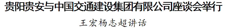 貴陽網·貴陽新聞訊 3月23日,貴陽貴安與中國交通建設集團有限公司座談會舉行,雙方就深化合作進行交流。市委副書記、市長王宏,中國交建黨委委員、副總裁楊誌超講話。