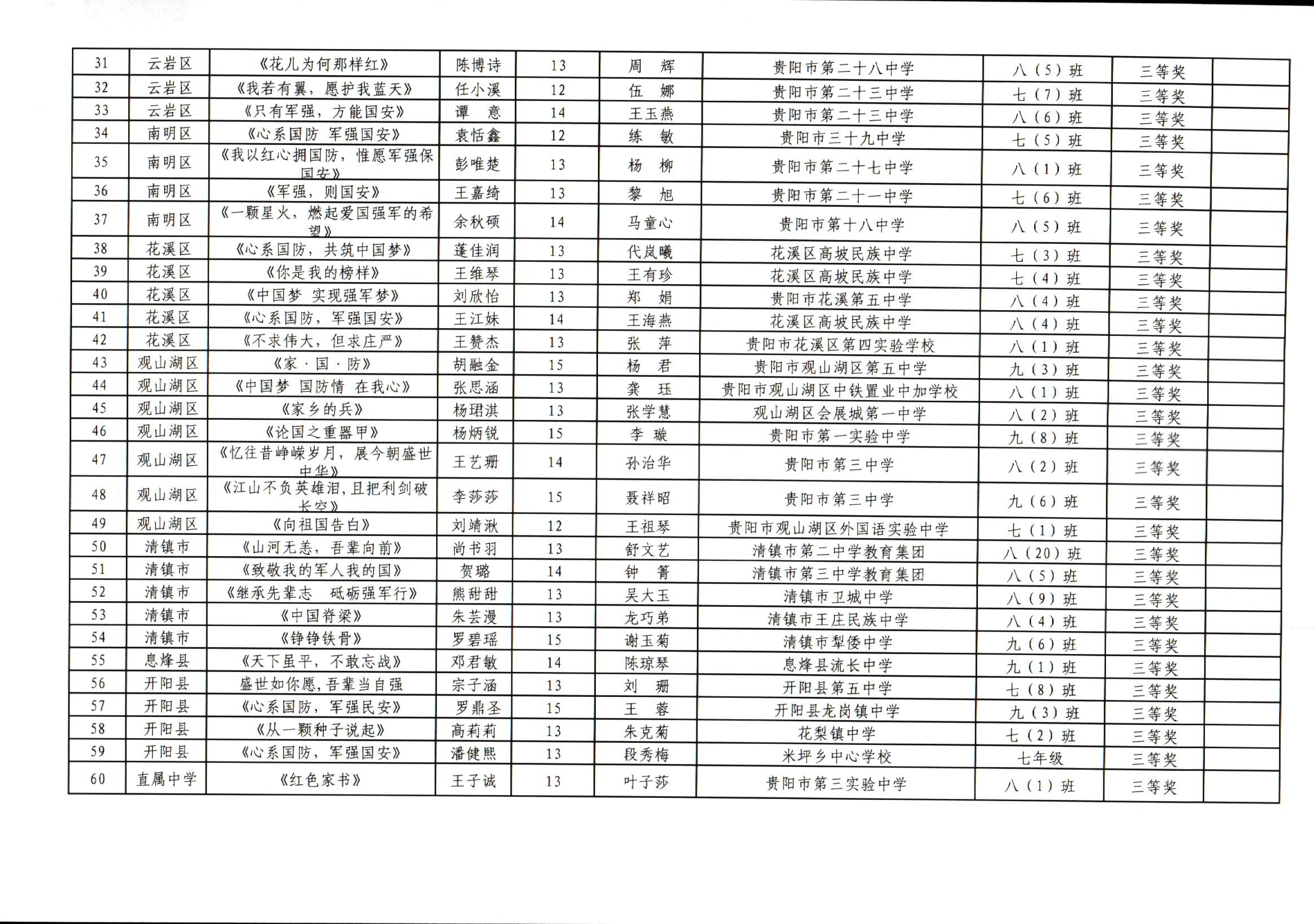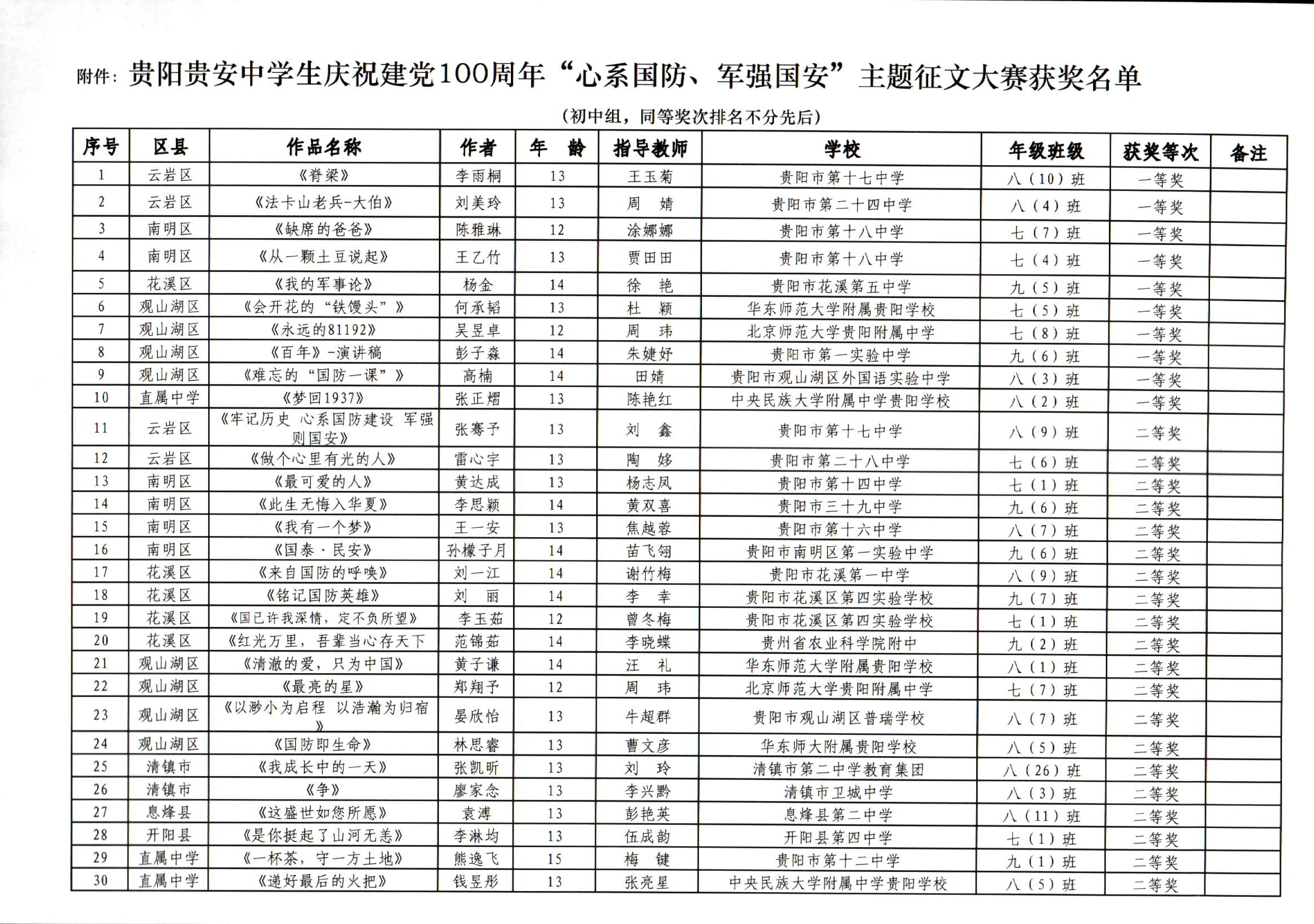 貴陽貴安中學生“心係國防、軍強國安”主題征文比賽結果出爐