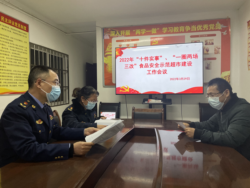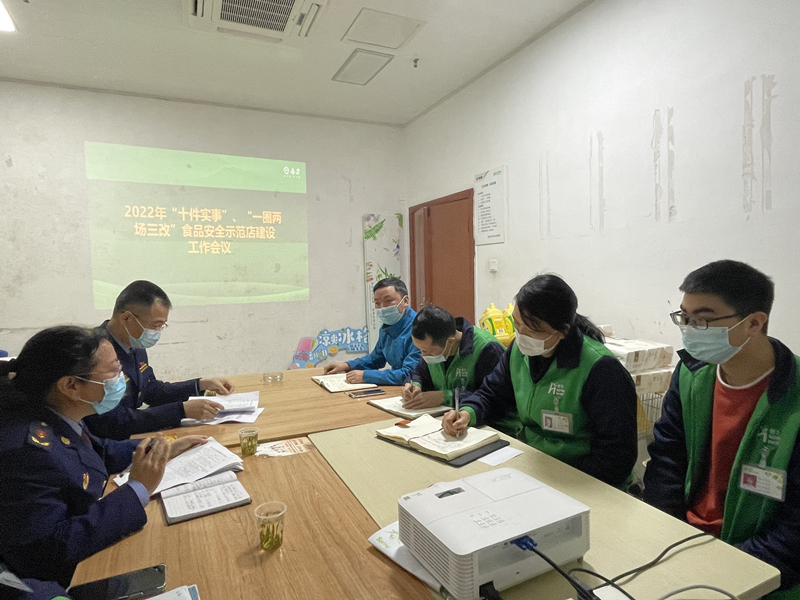 走訪過程中,油榨街分局工作人員向貴州合力超市南浦路店、貴陽農投惠民生鮮超市、南明區甲秀翠微小學3個示範點創建單位相關負責人傳達了南明區2022年為民辦“十件實事”內容,表明2022年“十件實事”目標要求建設不低於15個食品安全示範點。在圍繞“一圈兩場三改”生活圈打造中觀水路生活圈與油榨街生活圈需求的綜合考量下,將3家單位列為建設單位。