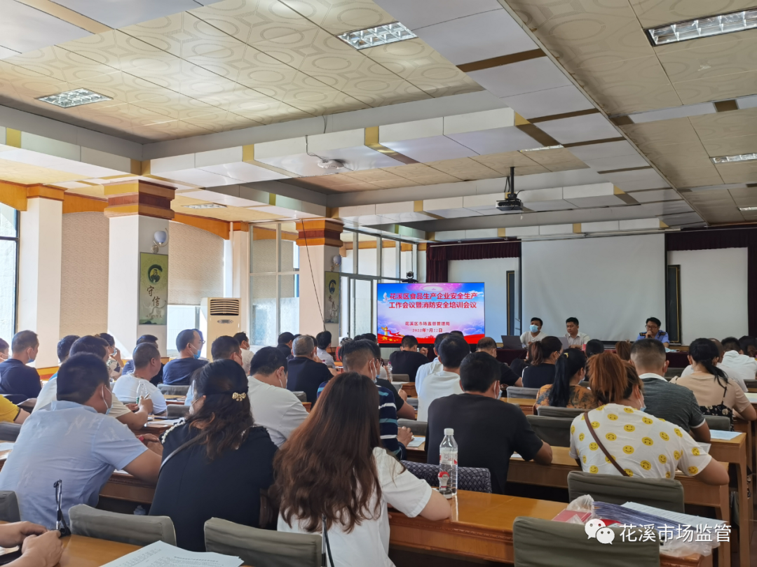 為(wei)提(ti)高(gao)花(hua)溪(xi)區(qu)食(shi)品(pin)生(sheng)產(chan)企(qi)業(ye)食(shi)品(pin)安(an)全(quan)意(yi)識(shi),督(du)促(cu)熟(shu)練(lian)掌(zhang)握(wo)食(shi)品(pin)安(an)全(quan)相(xiang)關(guan)法(fa)律(lv)法(fa)規(gui),規(gui)範(fan)生(sheng)產(chan)經(jing)營(ying)行(xing)為(wei),切(qie)實(shi)加(jia)強(qiang)食(shi)品(pin)源(yuan)頭(tou)管(guan)控(kong),落(luo)實(shi)食(shi)品(pin)安(an)全(quan)主(zhu)體(ti)責(ze)任(ren),7月22日,花溪區市場監督管理局組織召開花溪區2022年食品生產環節食品安全工作部署會暨安全生產、消防安全培訓會,全區70餘家食品生產企業負責人參會。