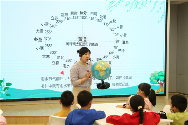 老師結合地球儀來講解“雨水”節氣