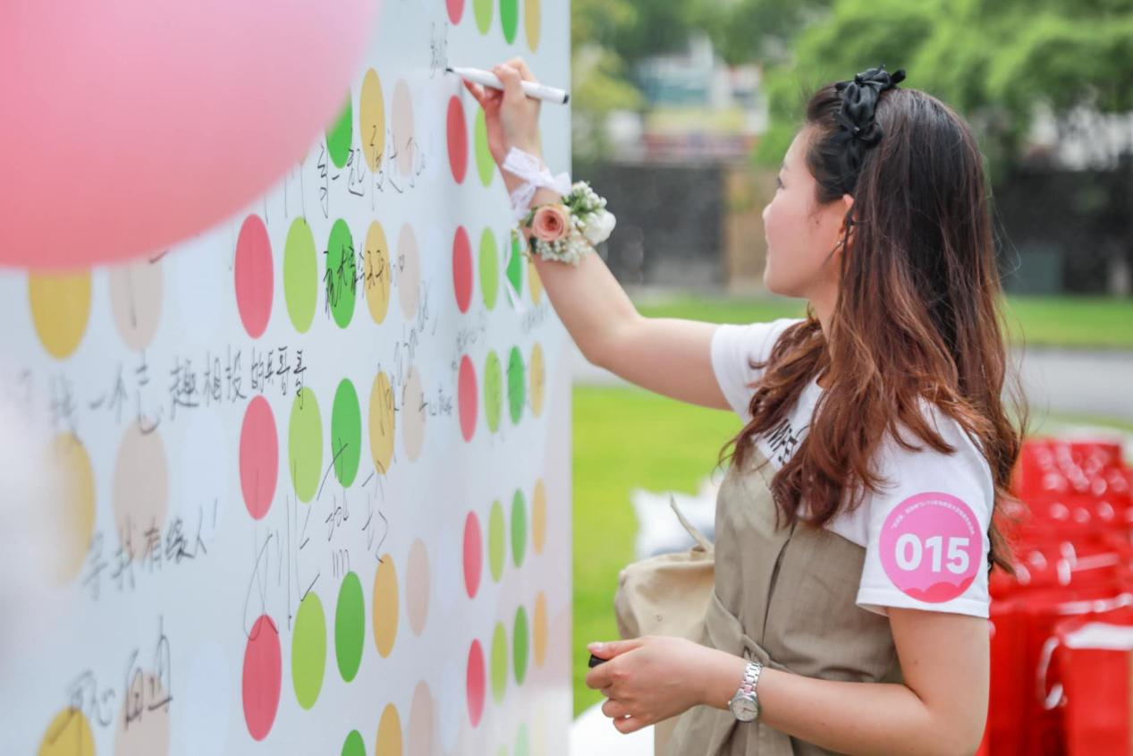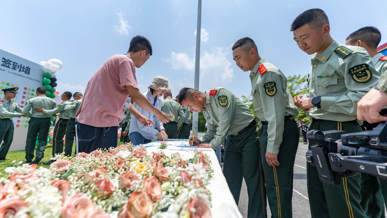 下午一點,伴隨著悅耳動聽的音樂,女嘉賓和兵哥哥們在簽到牆前排隊留下自己的姓名,領取“愛的號碼牌”。