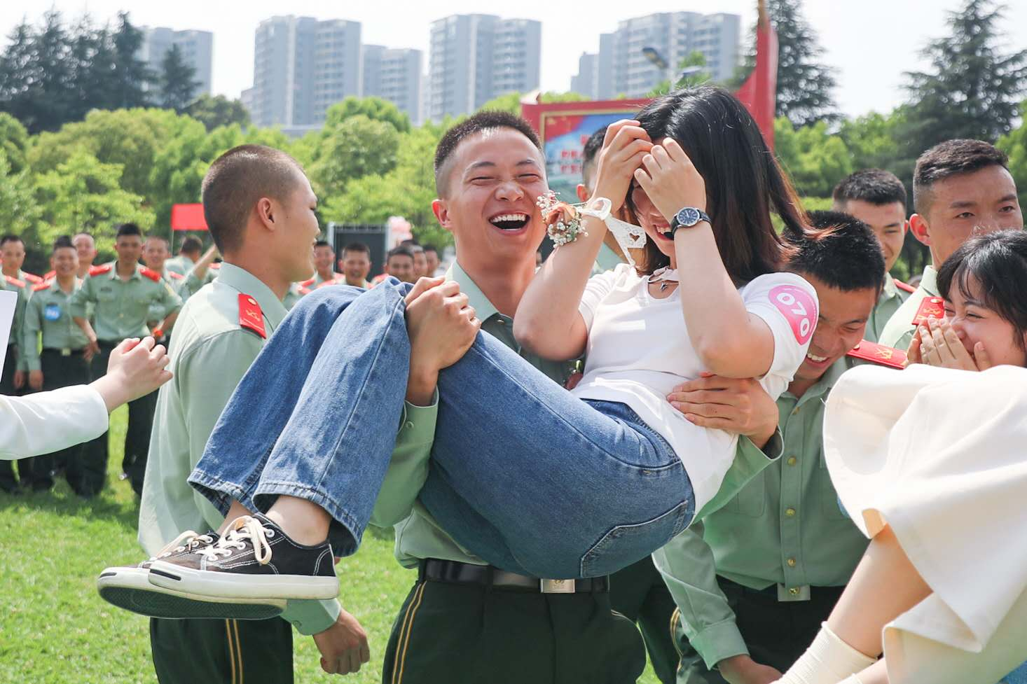 浪漫夏日 綠草茵茵 白雲悠悠,5月20日,貴陽市雙擁工作領導小組、貴陽市退役軍人事務局攜手武警貴州總隊某支隊、貴陽市婦女聯合會、南明區退役軍人事務局等部門聯合舉辦“情定橄欖綠 雙擁繪幸福”軍地聯誼活動。