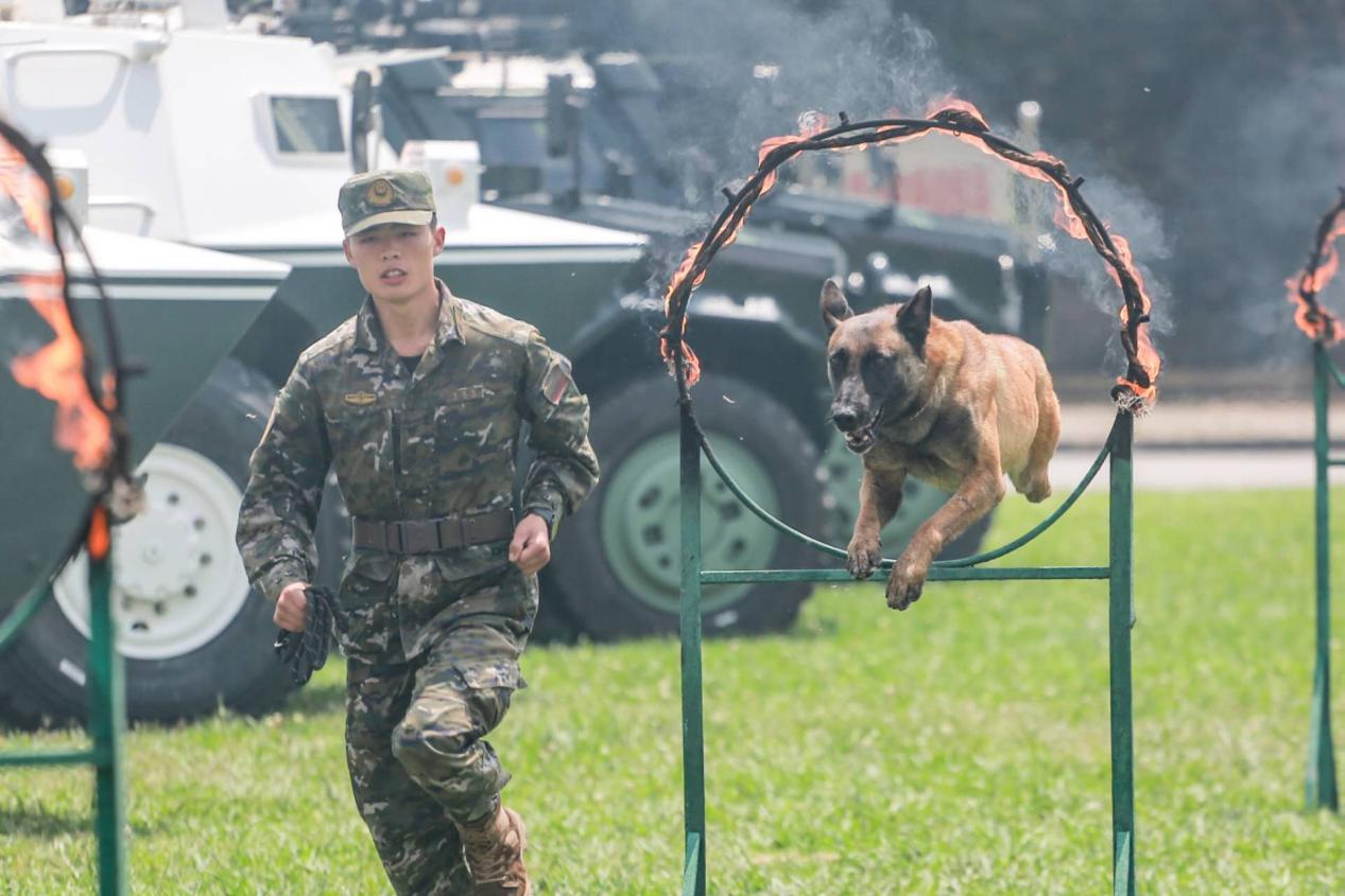 遊戲活動前,武警貴州總隊某支隊的官兵們用熱血青春和過硬本領,為到場的女嘉賓們上演了精彩的刺刀和軍犬表演。