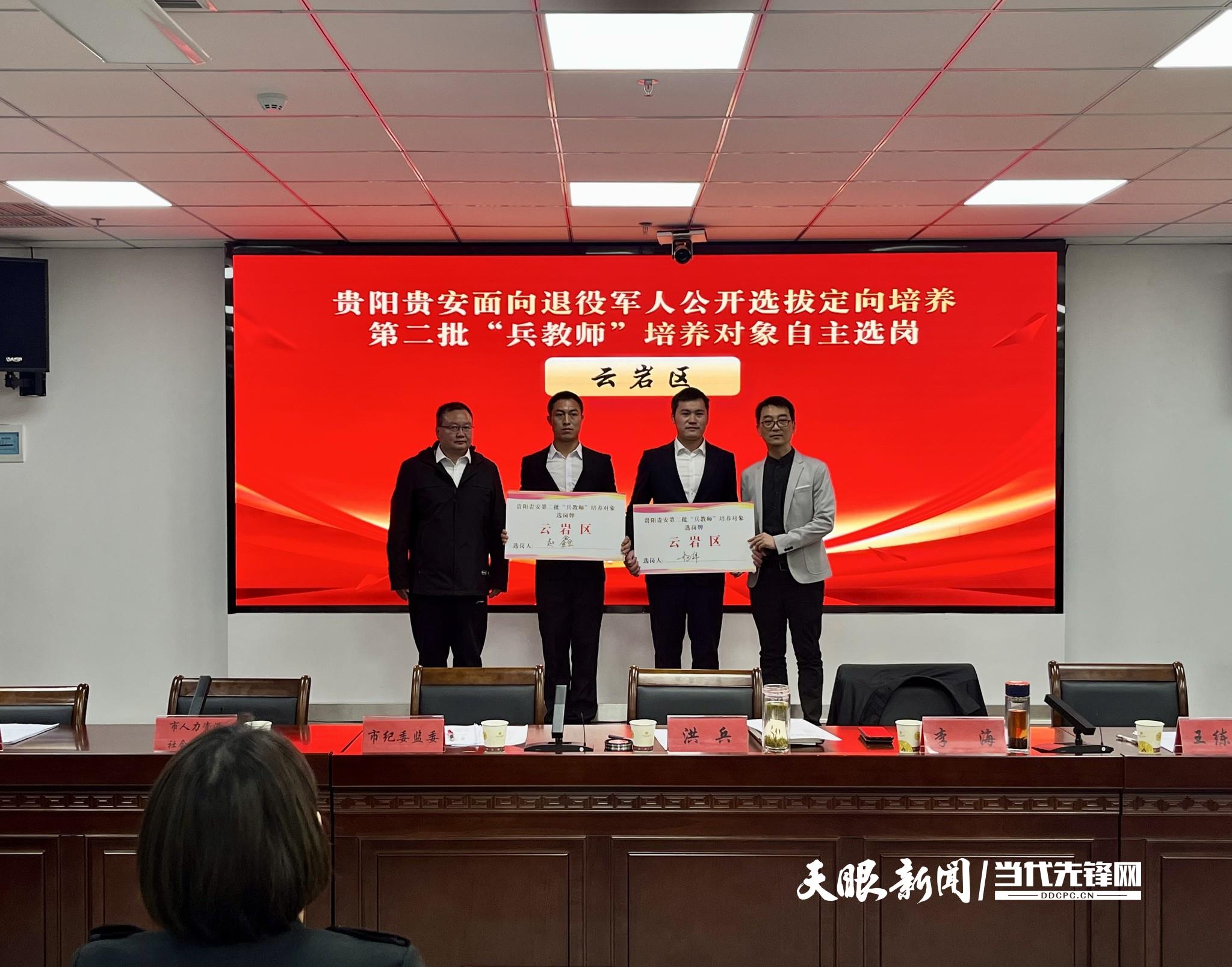在前不久於貴陽市退役軍人事務局召開的貴陽貴安麵向退役軍人公開選拔定向培養第二批“兵教師”選崗暨“兵教師”試點工作推進會上,經過筆試、抗壓能力測試、麵試和體檢、政審等程序,來自貴州省內的24名“兵教師”順利完成最後一道“關卡”——自主選擇崗位。