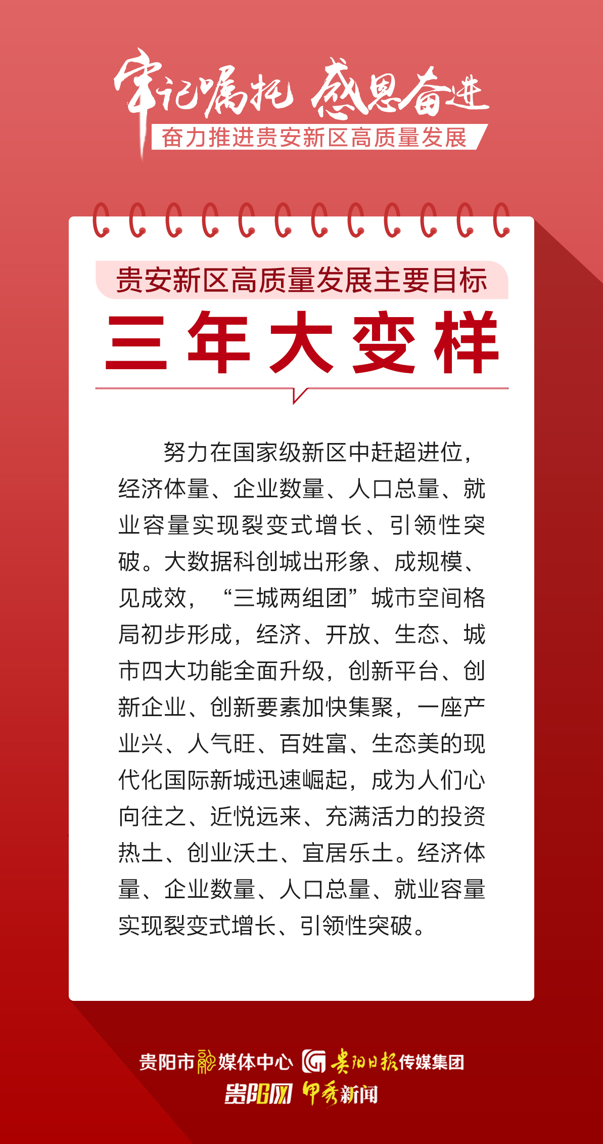 為深入貫徹落實省委、省政府召開的貴安新區高質量發展大會精神,《貴安新區高質量發展三年攻堅實施方案(2023—2025年)》近日發布,下麵,跟著貴陽網·甲秀新聞通過一組海報了解重點!