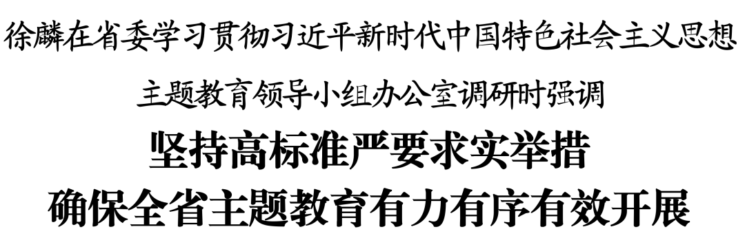 近日,省委書記、省sheng委wei學xue習xi貫guan徹che習xi近jin平ping新xin時shi代dai中zhong國guo特te色se社she會hui主zhu義yi思si想xiang主zhu題ti教jiao育yu領ling導dao小xiao組zu組zu長chang徐xu麟lin到dao省sheng委wei主zhu題ti教jiao育yu領ling導dao小xiao組zu辦ban公gong室shi調tiao研yan,指zhi導dao推tui動dong工gong作zuo。他ta強qiang調tiao,要yao認ren真zhen貫guan徹che落luo實shi黨dang中zhong央yang決jue策ce部bu署shu,全quan麵mian對dui標biao“學思想、強黨性、重實踐、建新功”的總要求,緊緊錨定“凝心鑄魂築牢根本、錘煉品格強化忠誠、實幹擔當促進發展、踐行宗旨為民造福、廉潔奉公樹立新風”的具體目標,堅持高標準、嚴要求、實舉措,確保全省主題教育有力有序有效開展。省領導陳少波、李建參加。