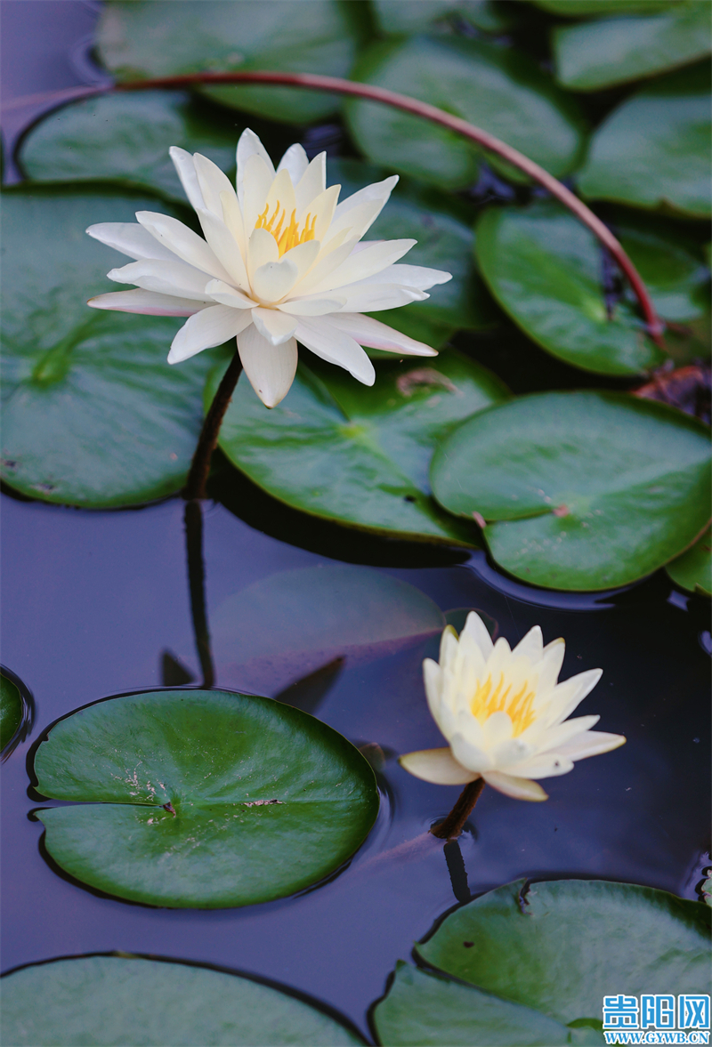 貴陽網·甲秀新聞訊 7月28日,貴陽市南明區花果園濕地公園裏盛開的睡蓮花如繁星點點,將公園裝扮得更加幽美,不少市民、遊客不時停下腳步盡情欣賞觀看。