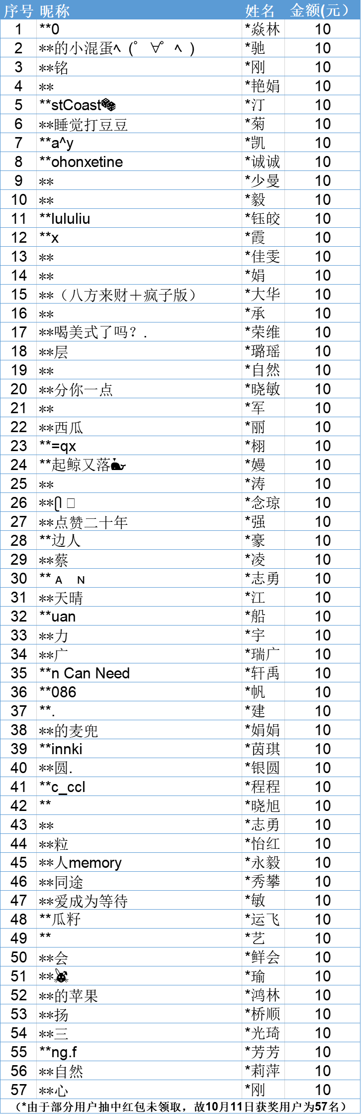 昨日“有獎學習”獲獎名單的!