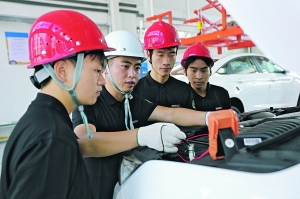 學生在貴州裝備製造職業學院汽車實訓中心進行實訓。