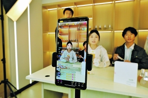 貴州工商職業學院電子商務係學生在電商直播中心進行直播帶貨實訓。