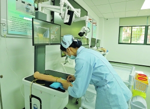 貴州工商職業學院護理學院老師在示教車上進行示範教學。