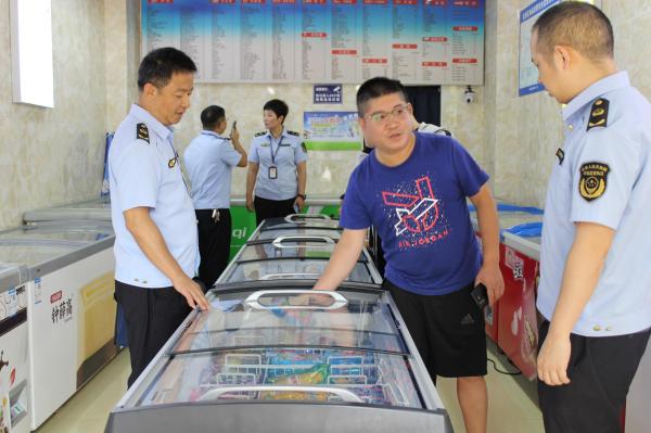7月4日上午10時,市市場監管局兵分兩路:食品流通管理處執法人員來到“雲岩區若鬆副食百貨經營部”。該店為冰淇淋、雪糕等產品代理銷售店鋪,主要消費者為周邊大型小區住戶。執法人員詳細查看了該店相關證照、索證索票情況和產品儲存是否符合條件等。檢查發現,該店衛生整潔、明碼標價,但存在票證不夠齊全,部分低溫冰櫃無溫度監控記錄等問題,責令該店立即整改。