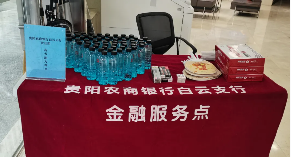 白雲支行分會在支行營業部、金陽支行設置高考愛心驛站,為高考學子無償提供水性筆、筆芯、橡皮擦等文具用品,貼心為考生及陪考家長準備礦泉水,並為其提供臨時休息場所及綠色窗口,用實際行動助力高考。
